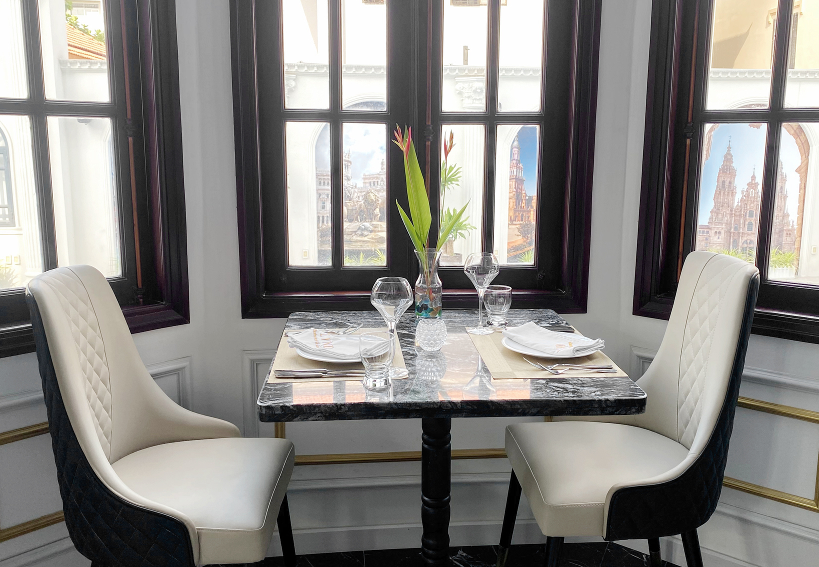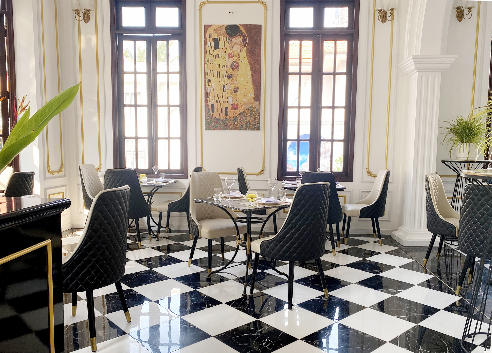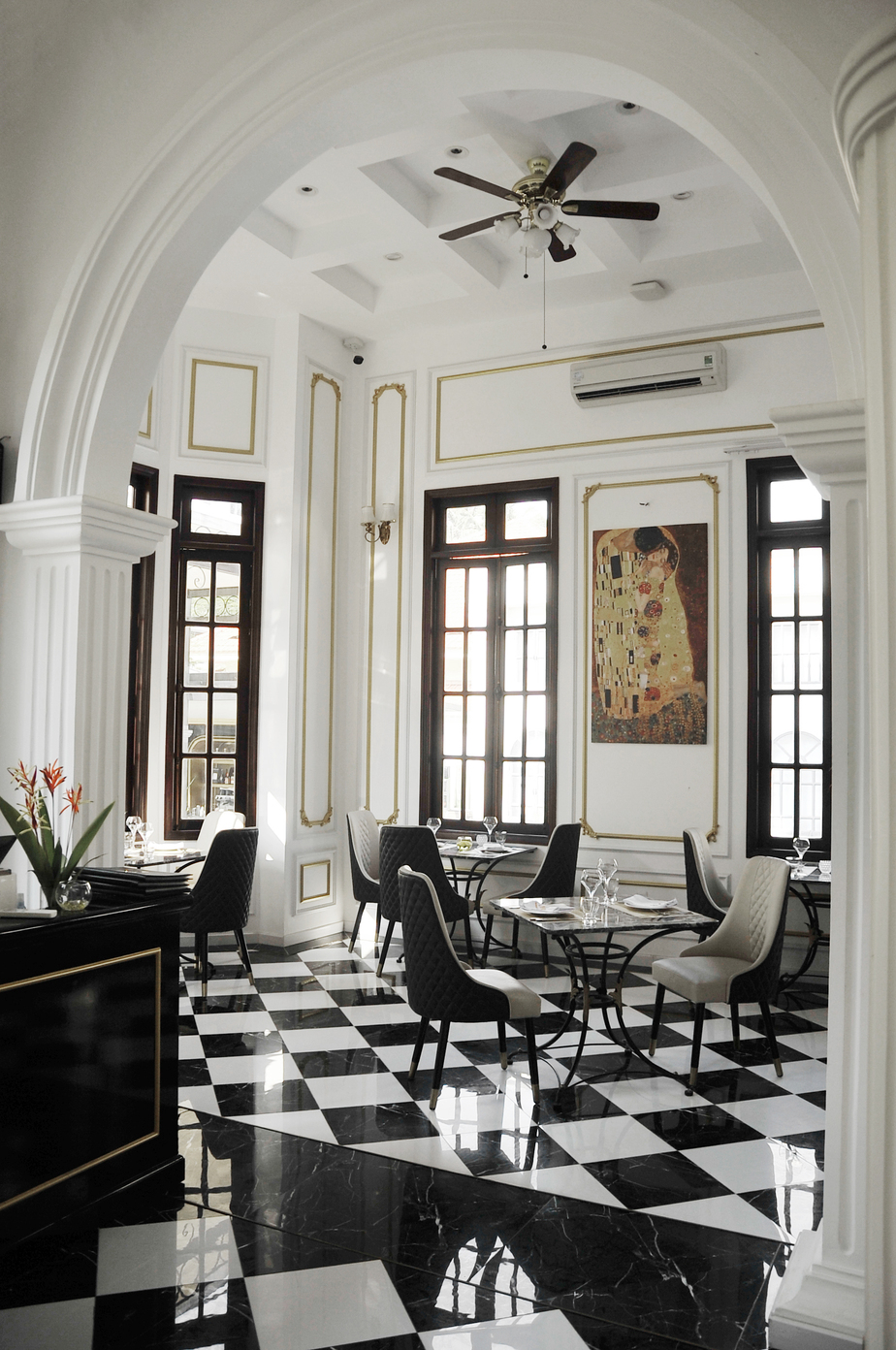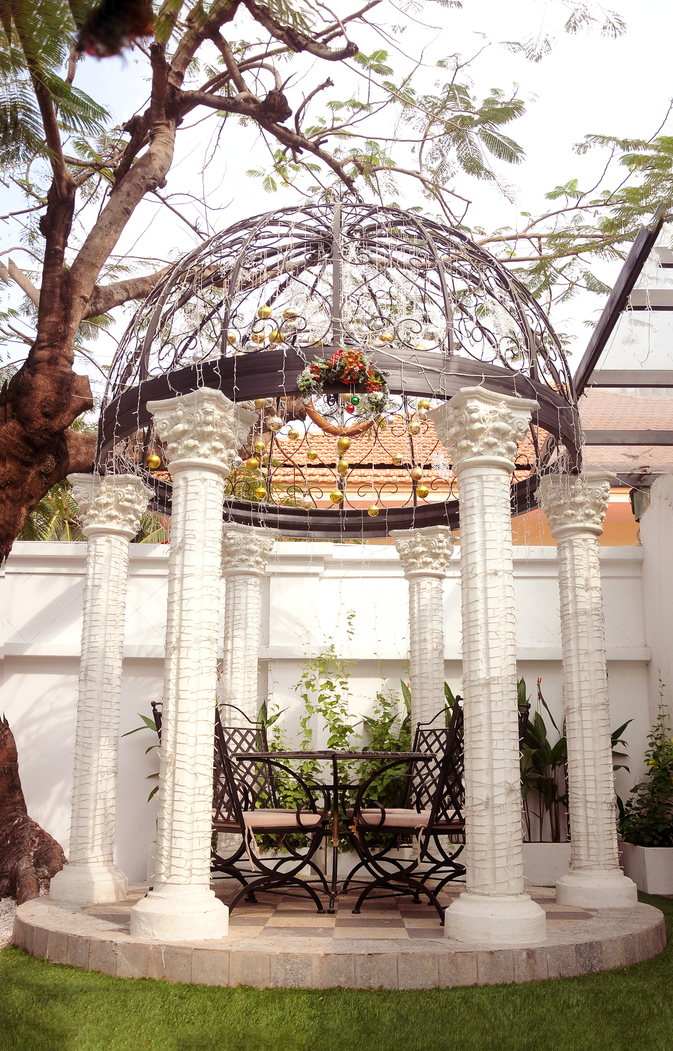 Châu Âu hoa lệ chính là mỹ từ để diễn tả khoảng không gian mở phía ngoài của nhà hàng. Được xây dựng theo kiến trúc đậm chất cổ điển với sự giao thoa của hai luồng kiến trúc Hy Lạp và Pháp, thực khách sẽ cảm thấy mình đang thực sự lạc vào xứ sở Châu Âu thơ mộng. Đây sẽ là sự lựa chọn hoàn hảo cho việc thưởng thức bữa tối tuyệt hảo bên người yêu thương giữa những giai điệu du dương và ánh đèn lấp lánh.
